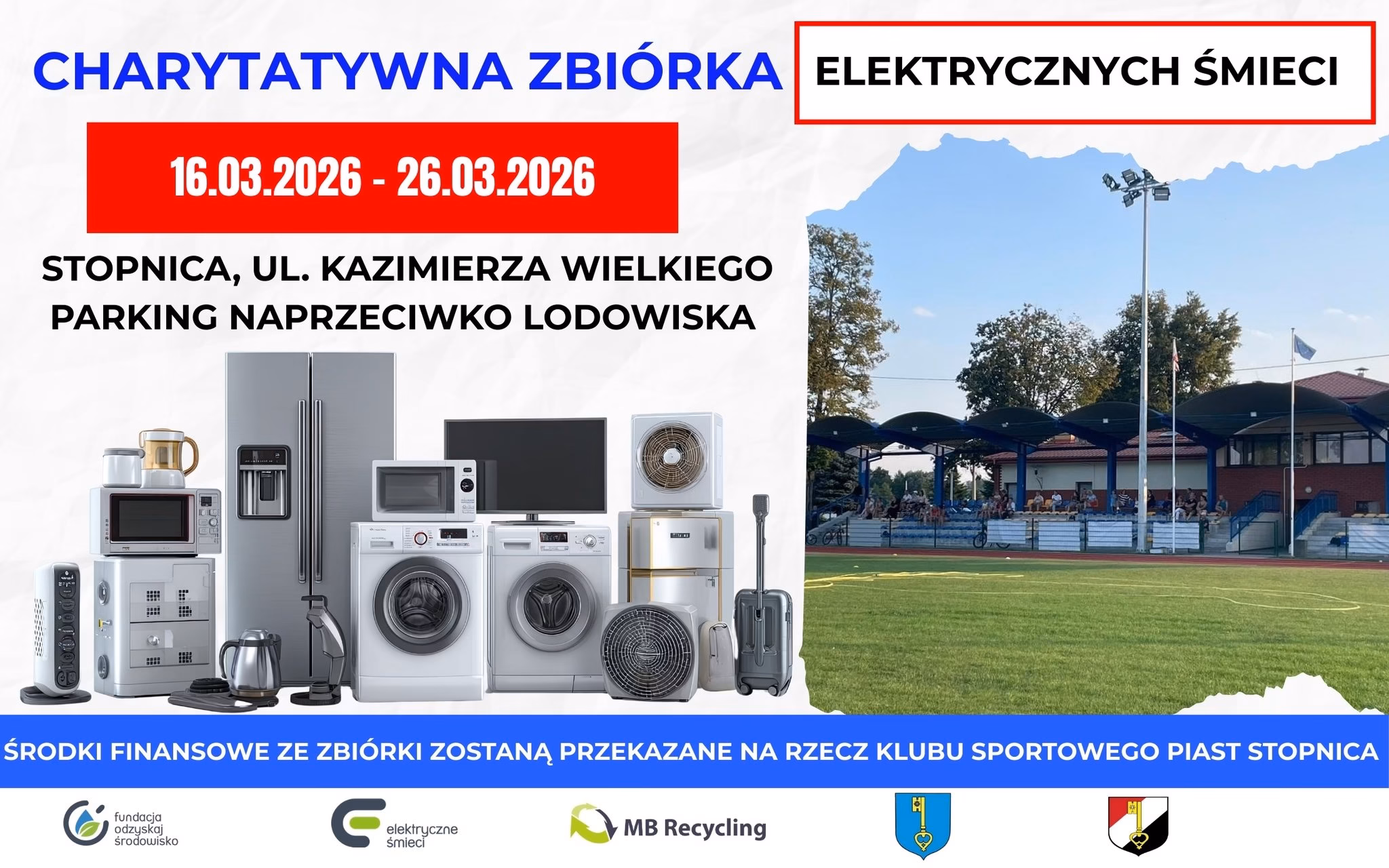 Zbiórka odbywa się w dniach 16.03.2026 – 26.03.2026 na parkingu przy ul. Kazimierza Wielkiego w Stopnicy (naprzeciwko lodowiska).